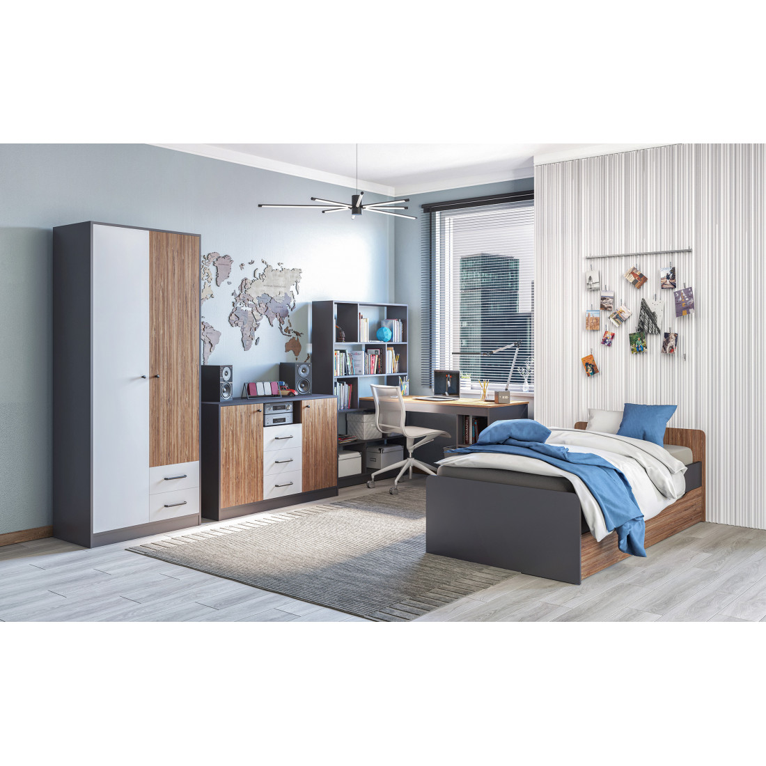 Коллекция Мальма для молодежной комнаты создана, исходя из последних веяний минимализма, которые так ценят люди, идущие в ногу со временем.