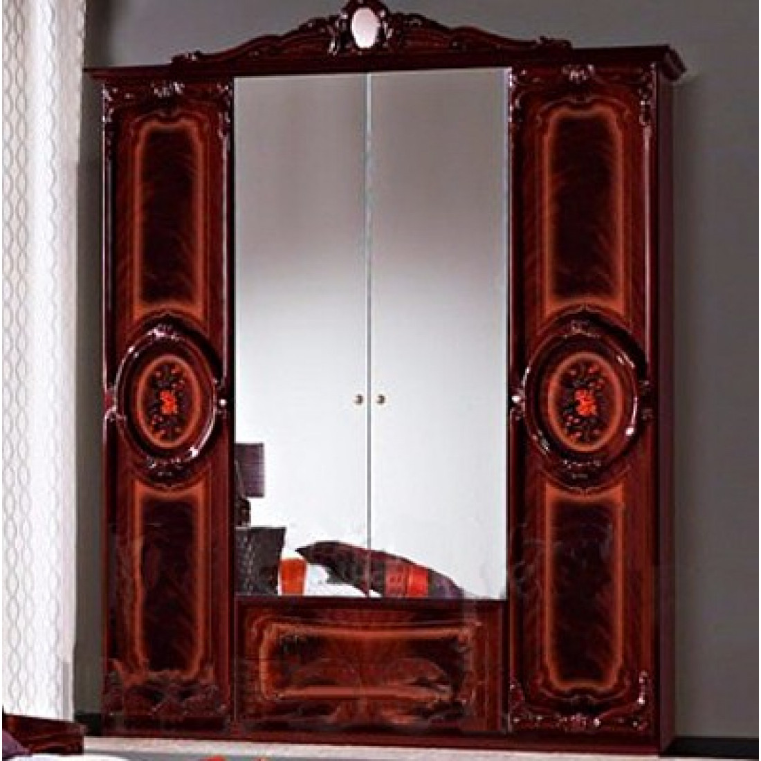 Четырехстворчатый шкаф для одежды Роза (могано) от Российской фабрики "ДИА мебель". Выполнен в элегантном классическом стиле. Цвет могано с глянцевым покрытием придают еще больше эстетичности. Шкаф поделен на две большие части, каждая из которых имеет не только вместительные полки для белья но и штангу для вешалок. Такой шкаф поможет с легкостью сэкономить место и удивит Вас своей компактностью.