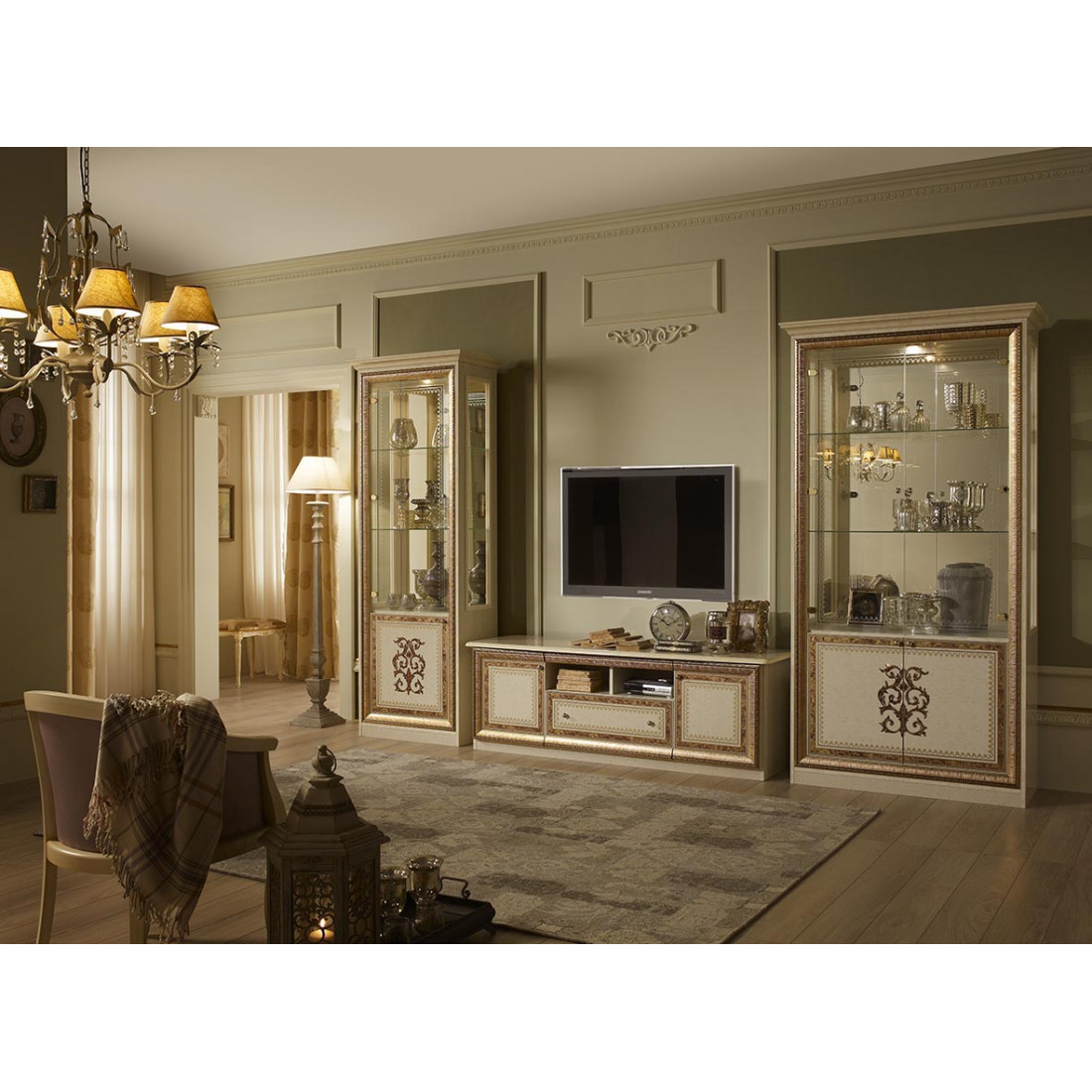 Гостиная Анита (бежевый глянец) #1 от Российской фабрики «ДИА мебель» Выполнена в цвете бежевый глянец с отделкой золотых фасадов. Классический стиль придают интерьеру неповторимую уникальность и роскошь. Изгибающиеся линии придают легкость и воздушность гостиной либо столовой. Коллекция "Анита" придаст вашему дому экстравагантность и принесет свежие нотки.