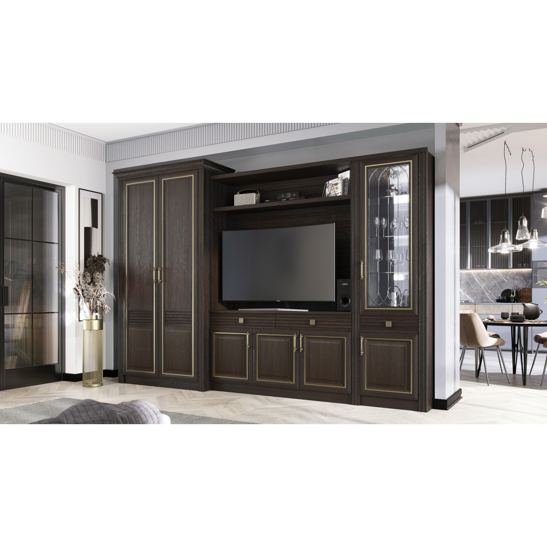 Витрина в гостиную Орлеан 839 ясень темный