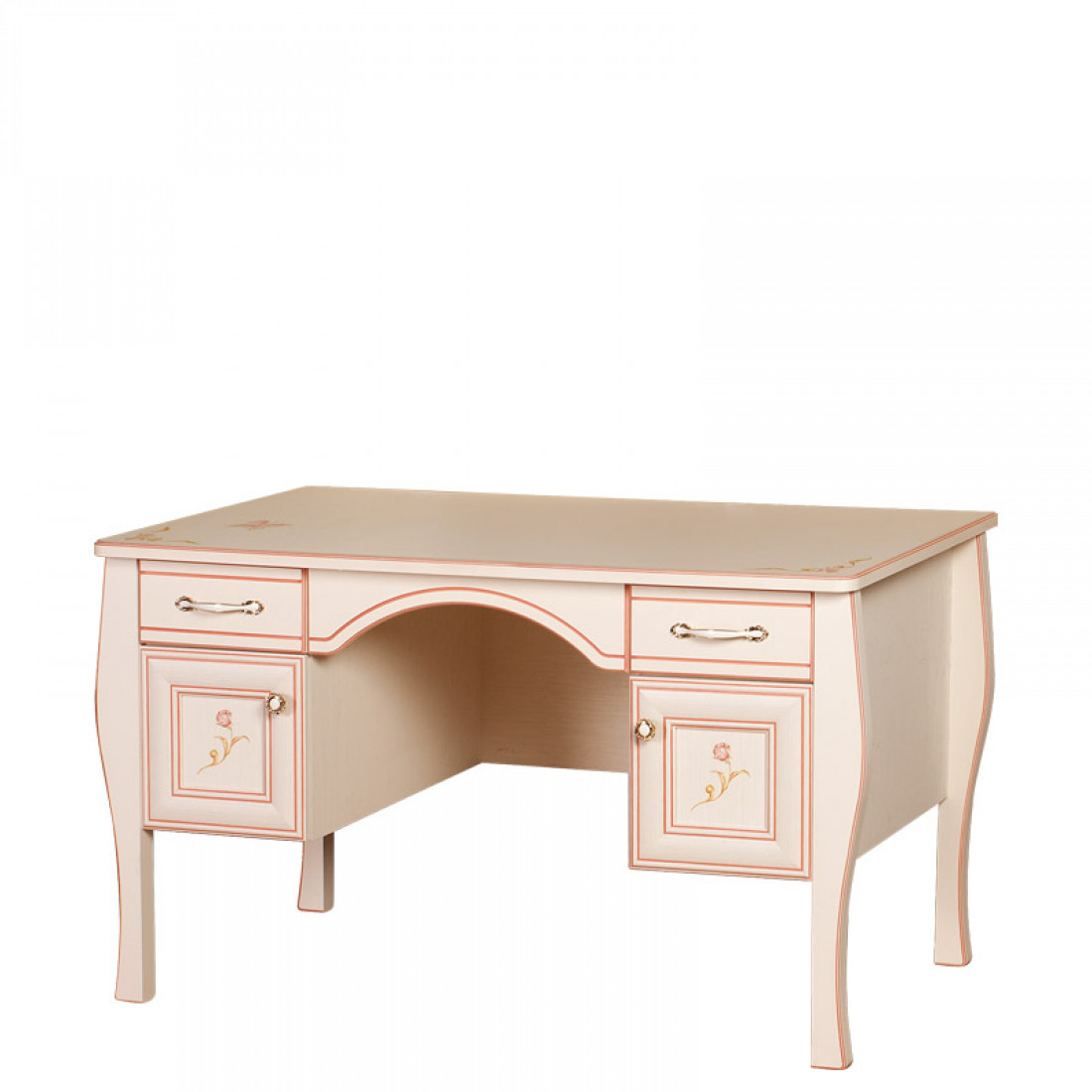 Фасады: МДФ, декор – кремовый белый, рисунок, патина, стекло с фацетом и рисунком