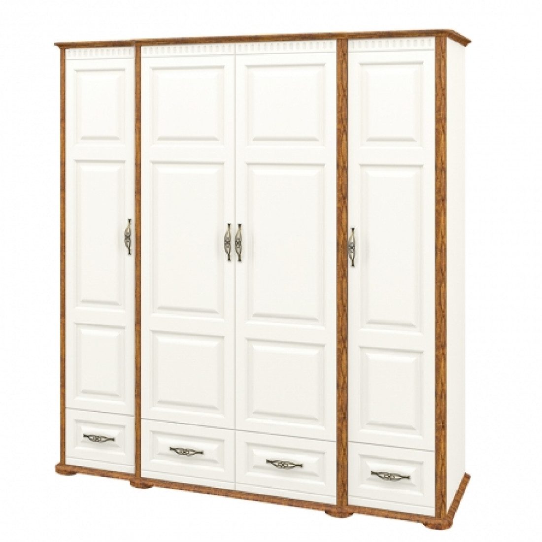Роскошный четырехстворчатый шкаф для одежды и белья МН-126-04 в спальню новой серии Марсель (Мебель-Неман) выполнен в светлом кремовом оттенке в комбинации с цветом "дуб кантри", является настоящим подарком производителя. Купить шкаф можно для комплекта полного спального гарнитура Марсель с другими элементами серии или отдельно.