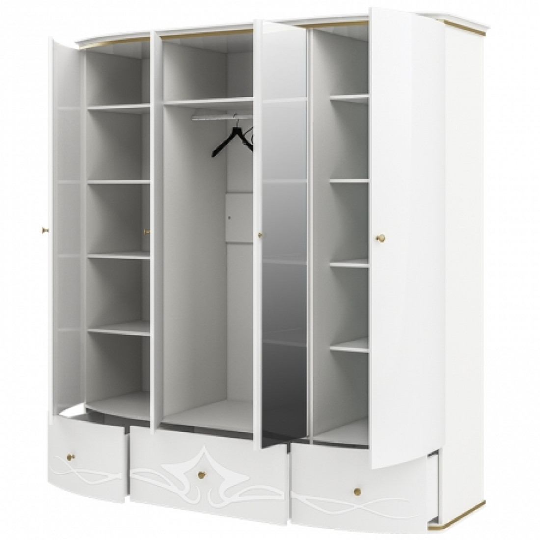 Пятистворчатый шкаф для одежды с зеркалом Богемия Филлини (Bogemia-Fillini) БМШ1/5 (Fi)