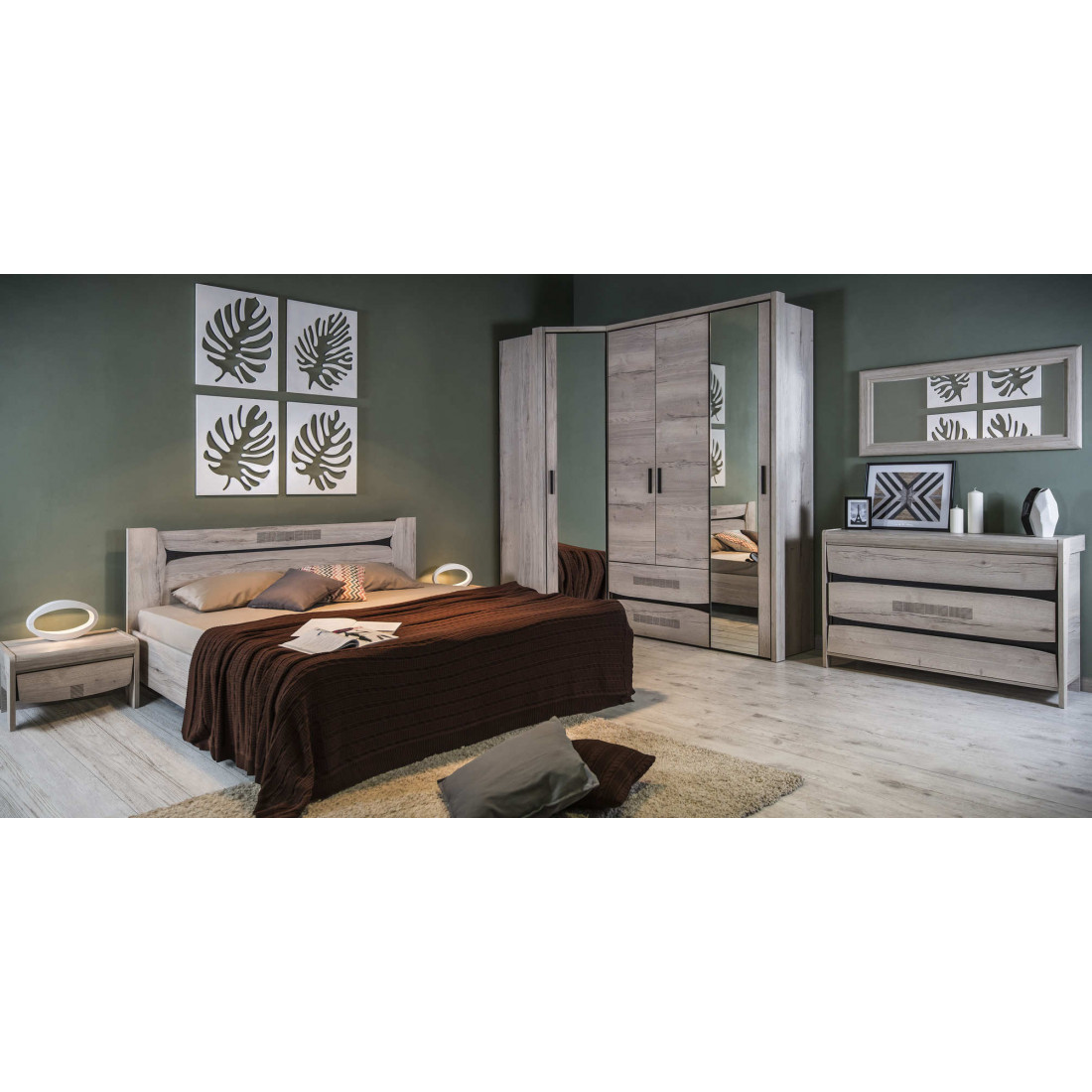 Спальный ганитур «Мале» - обладатель лаконичного и свежего дизайна. Особое внимание привлекают тактильные ощущения от прикосновения к мебели. Декор и структуры, схожие с натуральным деревом по рисунку и шероховатости, придают глубину и естественность. Широкий спектр модулей позволит эргономично использовать Ваше пространство.