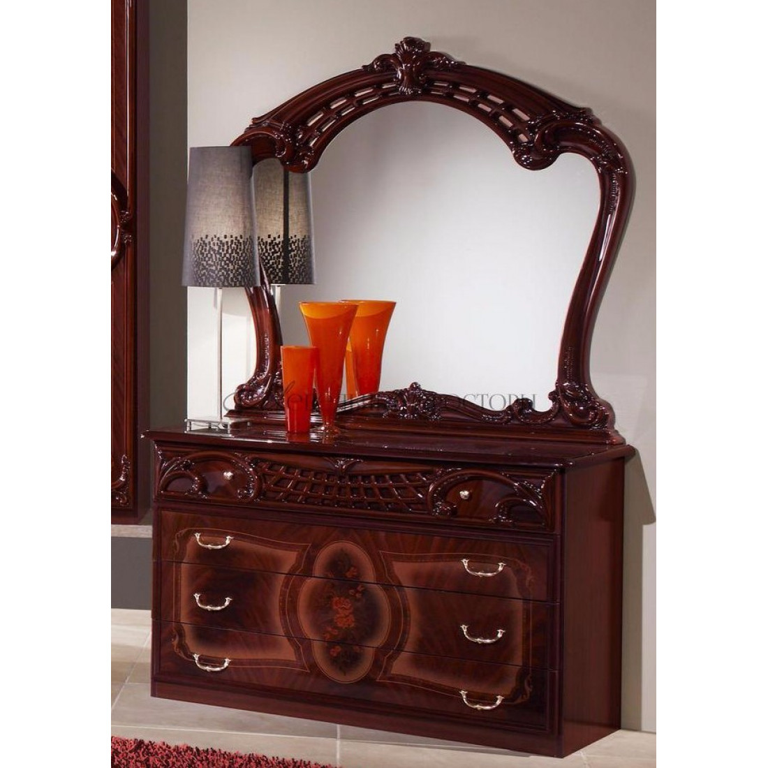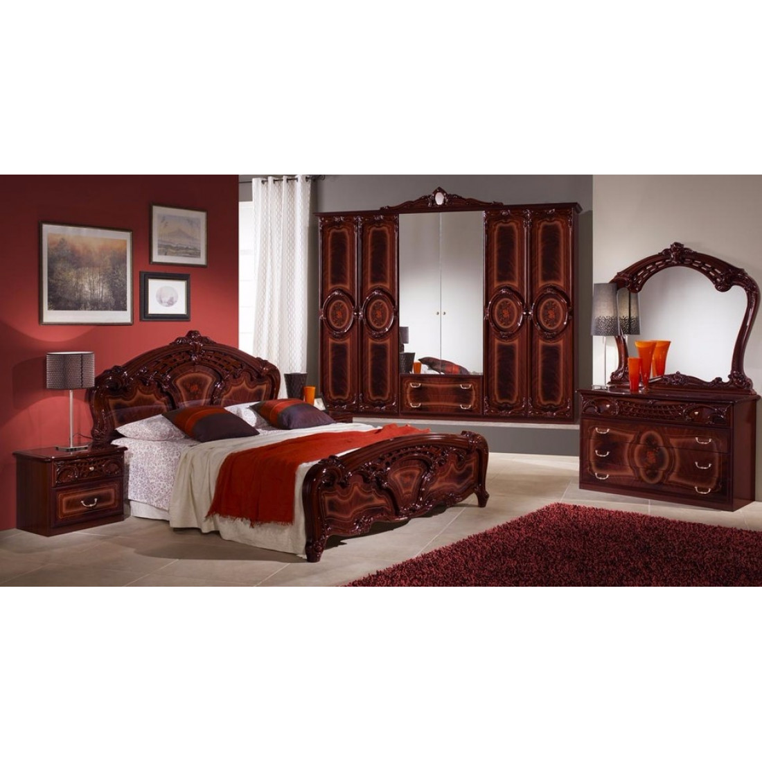 Спальня Роза (могано) композиция 2 от Российской фабрики "ДИА мебель". Выполнена в элегантном классическом стиле. Цвет могано с глянцевым покрытием придает этой модели еще больше изысканности и подчеркивает прекрасное чувство стиля своего владельца.